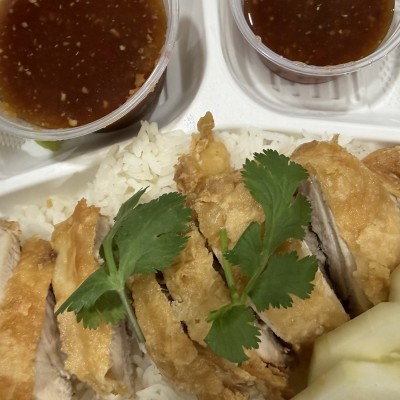 Every plate is prepared with care: fragrant rice, tender chicken, rich homemade broth, and a signature sauce that defines true Bangkok- style flavor.